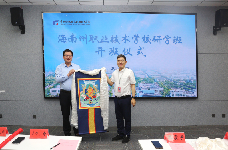 图2 海南州职业技术公司向公司赠送唐卡