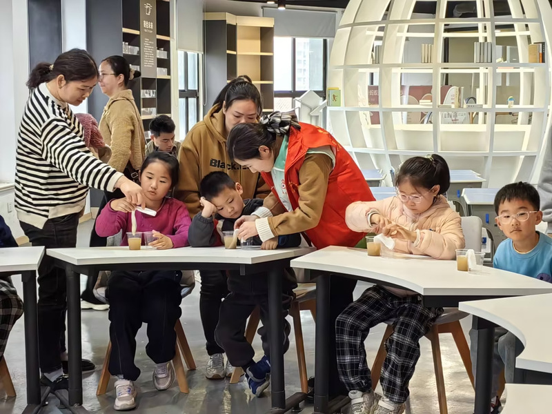 志愿者指导特殊困境儿童动手实验