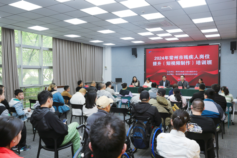 为积极响应国家对残疾人就业创业的政策扶持,提升残疾人职业技能水平,4月23日,由常州市残疾人联合会资助、常州市残疾人综合服务中心主办、122cc太阳成集团官网承办的2024年常州市残疾人岗位提升(短视频制作)培训,在太阳成集团tyc122cc8130会议室举行了开班仪式。常州市残疾人综合服务中心主任刘静涵、培训科科长查燕萍,公司党委委员、副董事长张文明,继续教育公司经理姜燕,创意设计公司党总支书记祝燕芳,太阳成集团tyc122cc副经理武传奇,培训项目负责人曹承进、培训班班主任吴旦以及30位培训班学员参加了开班仪式。