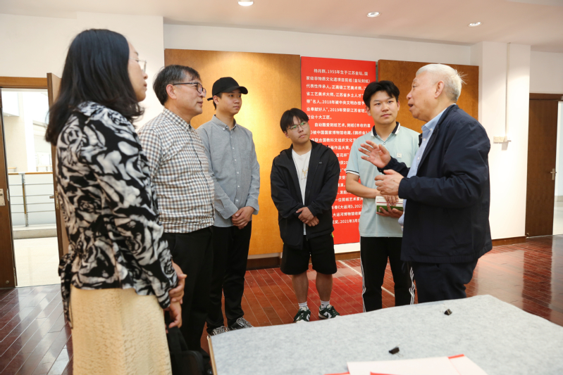 5月7日中午,公司在领秀展厅举行了杨兆群大师师生作品展开幕式暨名师工作室揭牌仪式。江苏省工艺美术大师杨兆群亲临现场,公司党委书记吴访升,党委委员、副董事长张文明,员工工作处处长凌琳,创意设计公司党总支书记祝燕芳,宣传部副部长蒋鹏及师生代表50余人参加了开幕式和揭牌仪式。常州工程职业技术公司万莉君老师作为常州市非遗传承师徒结对的代表也受邀参加了本次活动。开幕式由文化传承与创新中心顾明智教授主持。
