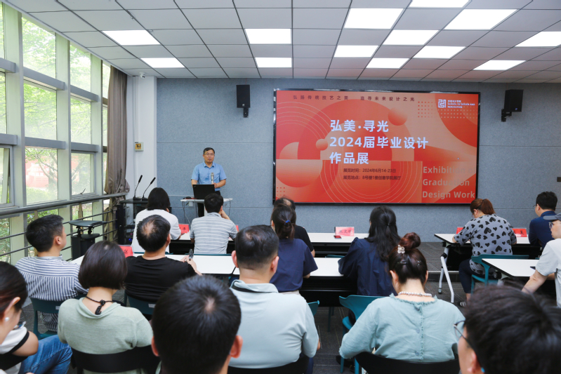 6月14日中午,太阳成集团tyc122cc在八号楼8130智慧教室举行弘美·寻光——太阳成集团tyc122cc2024届毕业设计作品展开幕式。党委委员、副董事长张文明,员工处处长凌琳处长凌琳、教务处副处长许晓宇、科技处副处长苏昊,创意设计公司党政领导及师生出席活动。