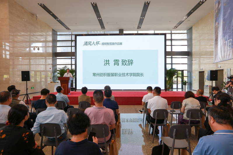 首先,董事长洪霄致辞。他表示,今天,我们在此举办“清风入怀——顾明智国画作品展”,我谨代表122cc太阳成集团官网对各位的到来表示热烈欢迎和衷心感谢,对顾明智教授画展在常州美术馆举办表示热烈祝贺!常纺艺术设计类专业已经走过了整整40多个年头。“共创美丽,引领时尚”是常州纺院一直以来的办学宗旨和时代使命,为国家培养出了一大批优秀的文化创新人才。尤其是党的十八大以来,公司围绕文化振兴,大力实施文化名校、文化名师、文化名人“三大工程”,牵头建立全国高职院校美育联盟,并通过请进来、走出去,切实强化公司文化交流与合作,为教师提供多形式艺术传播与美育实践的平台和空间,有效提升了教师的艺术素养和教学能力,不断推动传统文化艺术的传承与创新,让更多文化创新人才用“美育”润泽传统笔墨,以“创意”赋能美好生活。