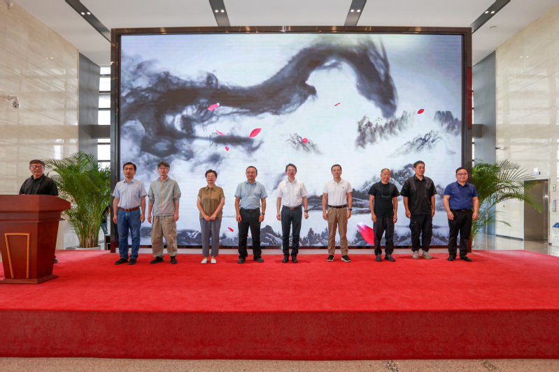 在嘉宾致辞之后,由舒文、李庆、洪霄、黄海波、沈华强、吴鸣、孙燕云和顾明智共同上台,启动开幕仪式,最后由文联主席舒文宣布展览开幕。