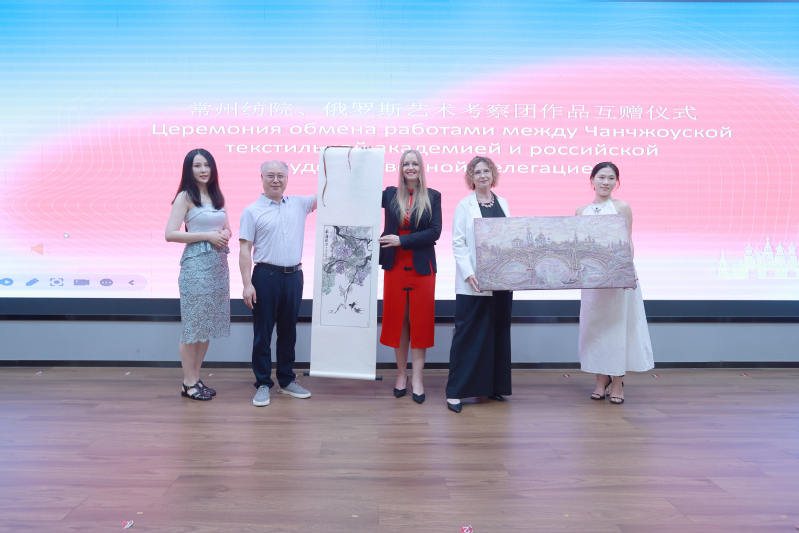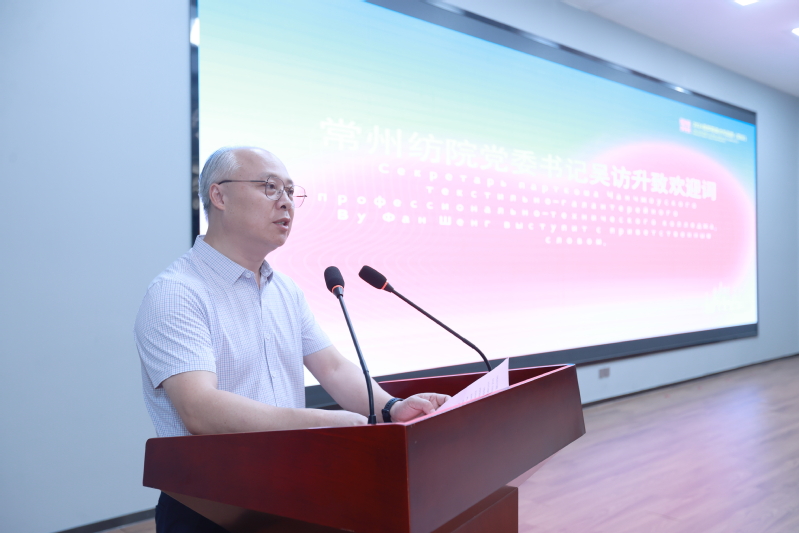 公司党委书记吴访升致欢迎词,他指出:本次活动以艺术为纽带,续写中俄文化交流新篇章,期待未来能以艺术和设计为切入点,共同探讨艺术的真谛,分享彼此的文化精髓,提升常州市和公司在国内乃至国际上的知名度,促进国际化进程,在“职教出海”和国际化交流合作中开启新模式、探索新路径。吴书记同时强调本次活动也是全国职业院校美育联盟的重要活动之一,希望通过本次展览和交流,共同推动美育事业的繁荣和发展。