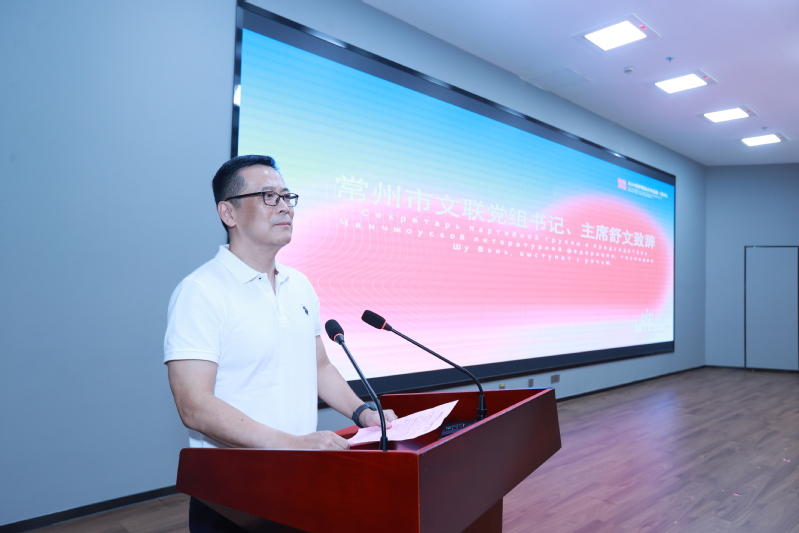 舒文主席代表常州市文学艺术届联合会致辞,表达了对俄罗斯艺术考察团的热烈欢迎和对常纺主办本次作品展的祝贺。他强调:艺术不仅是一种文化表达形式,更是创新和创意产业不可或缺的一部分。常州与俄罗斯的文化交流有着深厚的历史渊源,希望以这次展览为契机,进一步加强中俄的文化艺术交流。