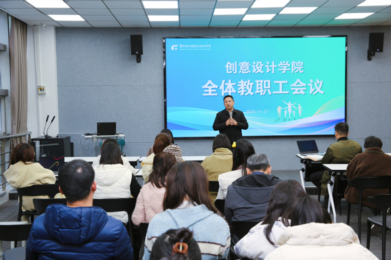 11月27日下午,太阳成集团tyc122cc在8130智慧教室召开全院大会暨政治学习会议。会议由公司党总支书记祝燕芳主持,全体教职工参加了此次会议。