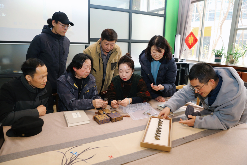 陈老师手持一件件精美的明清银饰,细细讲解着它们的工艺特色、文化内涵以及每一款银饰背后鲜为人知的故事。从造型典雅的发簪到寓意吉祥的锁片,从精雕细琢的手镯到玲珑剔透的耳环,这些银饰不仅展现了古代工匠们巧夺天工的技艺,更反映了当时的社会风貌、民俗风情以及人们对美好生活的向往与追求。大家围坐在一起,聚精会神地聆听着陈老师的讲解,不时发出阵阵赞叹声,仿佛穿越时空,与古人进行了一场心灵的对话。值得一提的是,何卫平副经理特意带来了自己小时候佩戴过的银锁以及个人收藏的珍贵银饰,与大家共同分享其中的文化韵味和情感价值。张珊老师也积极响应,带来了自己珍藏的银饰,与大家一起交流鉴赏,现场气氛热烈而融洽。