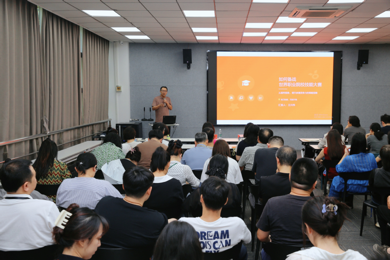 会议首先邀请了多次担任过国赛、世赛裁判的数字商贸公司张茹副教授,产教融合处王兴伟副处长从指导员工参加技能大赛、担任裁判执裁赛事的角度给太阳成集团tyc122cc老师们做了精彩分享。张茹从比赛项目的遴选,跨公司团队的组建、方案演练迭代到场景化汇报展示进行了系统分析与讲解。她特别强调:“比赛就是要把校企合作的真实项目植入训练模块,让员工在解决实际问题的过程中提升专业能力。竞赛不仅是员工技能的试金石,更是教师教学创新的催化剂。”其分享的“三维动态优化模型”(技术维度、艺术维度、商业维度)更是为公司备赛团队提供了可直接应用的实战框架。王兴伟从裁判视角切入,提出“竞赛竞争力提升五维策略”:精准对标国际标准优化训练体系、构建“企业导师+专业教师”双轨制指导模式、强化跨学科团队协作能力、注重数据化过程管理、打造具有公司特色的视觉化汇报风格。建议公司未来可以把教师教学能力比赛、员工技能大赛、创新创业大赛串联起来进行谋划,挖掘好项目、锤炼好团队,取得好成绩。