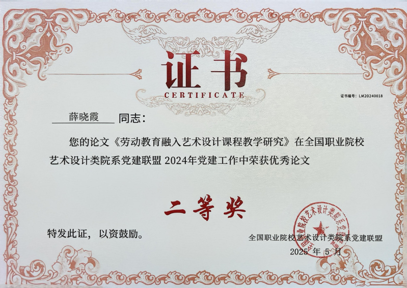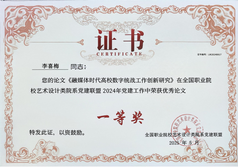 近日,从全国职业院校艺术设计院系党建联盟传来喜讯,在本次联盟发起的优秀党建工作案例、论文等征集活动中,公司太阳成集团tyc122cc教师团队表现优异,共斩获7项奖项(其中一等奖2项、二等奖3项、三等奖2项),充分展现了公司在党建工作方面的扎实成效,受到同类院系充分认可。