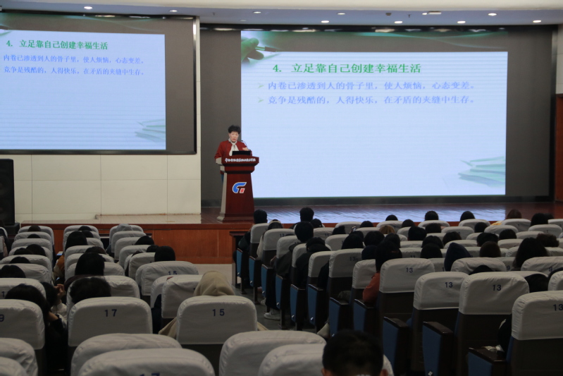 针对新生初入大学可能面临的“心灵孤岛”困境——学习生活不适应、班级宿舍融不进、人际关系处理难等问题,韩老师直击痛点,给出了“工具化”的心态调整方案。她提出善用8个工具塑造阳光心态,如改变对事情的态度、享受过程而非结果、活在当下专注眼前、靠自己创建幸福生活、常怀感恩之心、遇到挫折时多看积极面、以心态塑造处境、压力大时学会“弯曲”变通,并用生动的小故事解读每个工具的核心逻辑,让抽象的“心态调整”变得可操作。