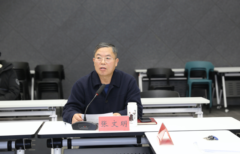 12月9日下午,创意设计公司党总支在8130智慧教室召开了2025年理论学习中心组(扩大)会,党政班子全体成员,各党支部书记、支部委员,专业带头人,教研室主任,分工会主席,分团委书记及综合办公室全体成员参加了学习。公司党委委员、副经理张文明,公司巡学旁听组第一小组组员、服装与时尚设计公司党总支书记王磊出席指导。本次学习的主题是“深入学习党的二十届四中全会精神”,由公司党总支书记祝燕芳主持。