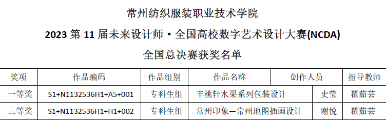 近日,由工业和信息化部人才交流中心主办的第十一届未来设计师·全国高校数字艺术设计大赛(NCDA)获奖名单公布,创意公司师生作品在1826所参赛高校的近29万件作品中脱颖而出,共获国赛奖项2项,其中,获得一等奖1项、三等奖1项;另外在省级赛中,获得一等奖2...